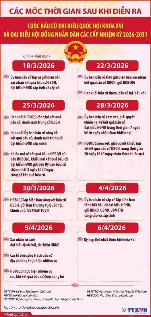 Các mốc thời gian quan trọng sau cuộc bầu cử